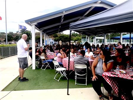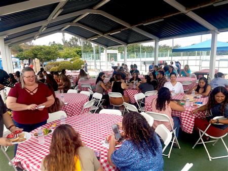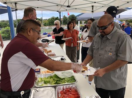 On Thursday the Rotary Club of Fallbrook held its annual Welcome Back barbeque for the staff of the Fallbrook Union Elementary School District. FUESD staff took a break from preparing for the coming school year and were treated to a BBQ lunch at Ingold Sports Park. Just our way of thanking them for all they do to care for the children in our community.